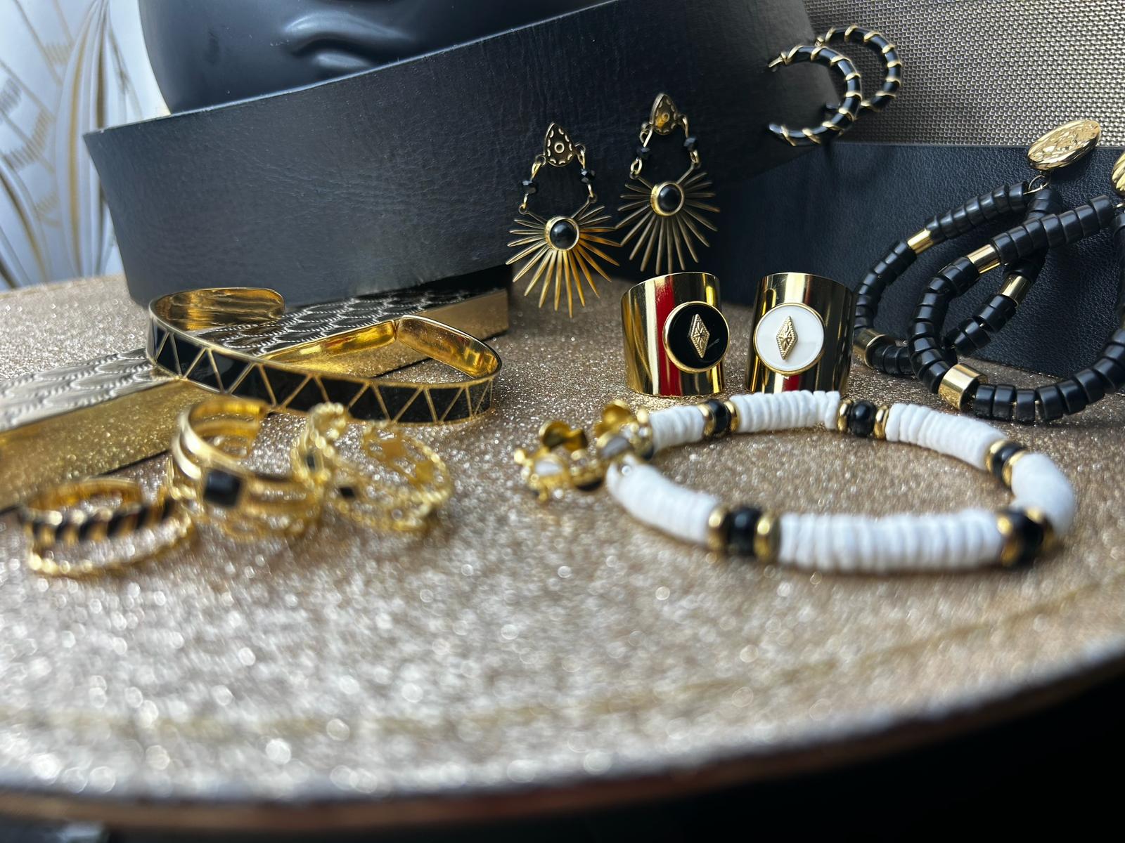 Des formes géométriques épurées, des contrastes de doré, noir et blanc : chaque bijou reflète une élégance affirmée et une identité forte. Une alliance entre culture et modernité, pensée pour sublimer chaque personnalité.